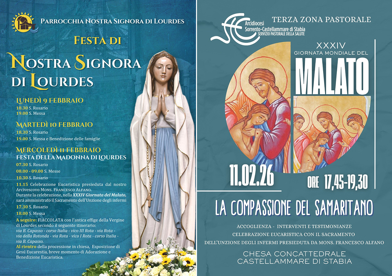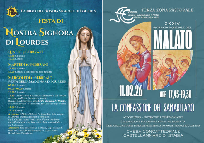 La diocesi di Sorrento-Castellammare di Stabia si prepara a celebrare, mercoledì 11 febbraio 2026, la XXXIV Giornata Mondiale del Malato con due significativi momenti di fede e preghiera.