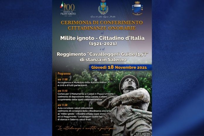 “Si terrà domani mattina – ha dichiarato in una nota stampa il Sindaco di San Cipriano Picentino, Sonia Alfano – la cerimonia di conferimento della cittadinanza onoraria al Milite Ignoto e al Reggimento “Cavalleggeri Guide” (19º): l’evento si colloca nell’ambito del centenario delle celebrazioni del Milite Ignoto.