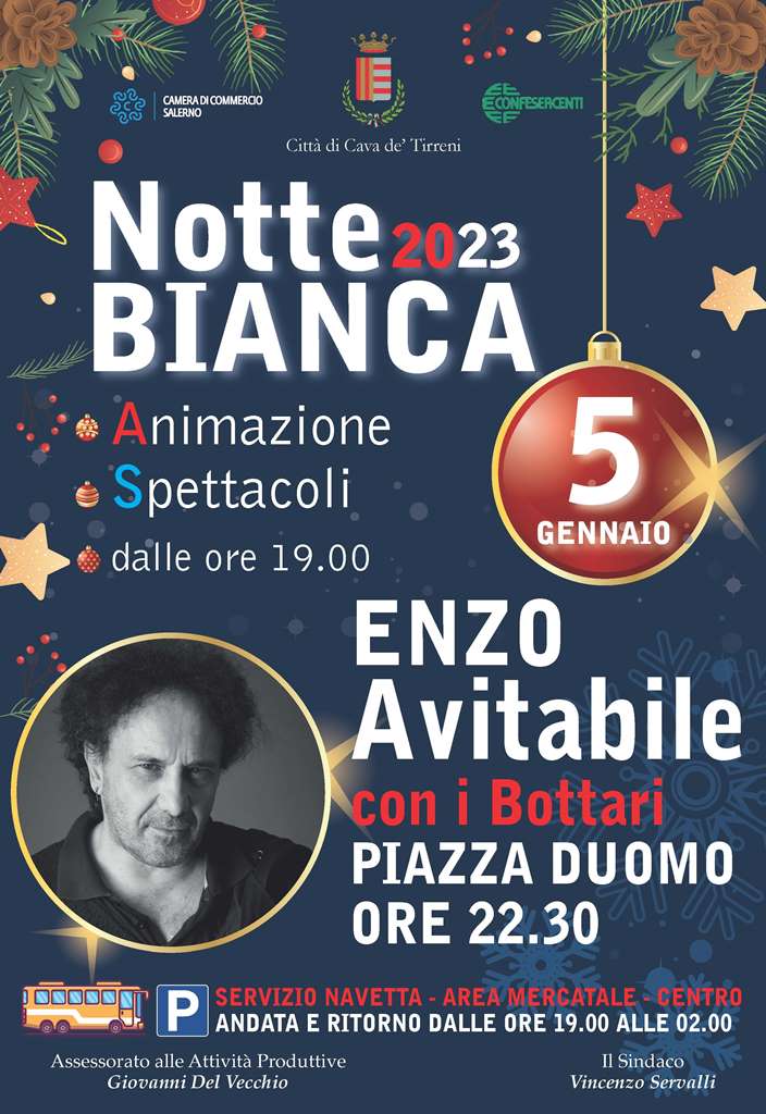 Sarà Enzo Avitabile l’ospite clou della diciottesima edizione della Notte Bianca a Cava de’ Tirreni, in programma giovedì 5 gennaio 2023.