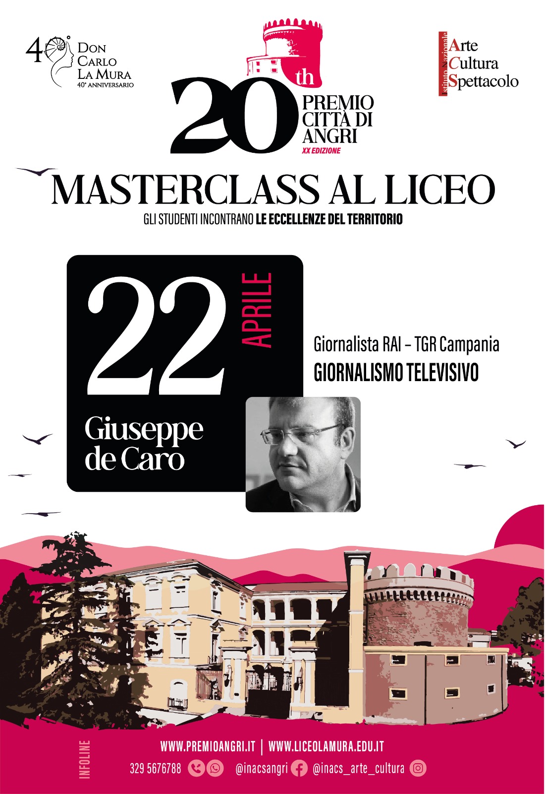 Master Class al Liceo è l’ennesimo frutto della collaborazione tra l’Istituto Nazionale Arte Cultura Spettacolo che produce ed organizza il Premio Città di Angri – ed il Liceo Don Carlo La Mura – Eccellenza scolastica cittadina.