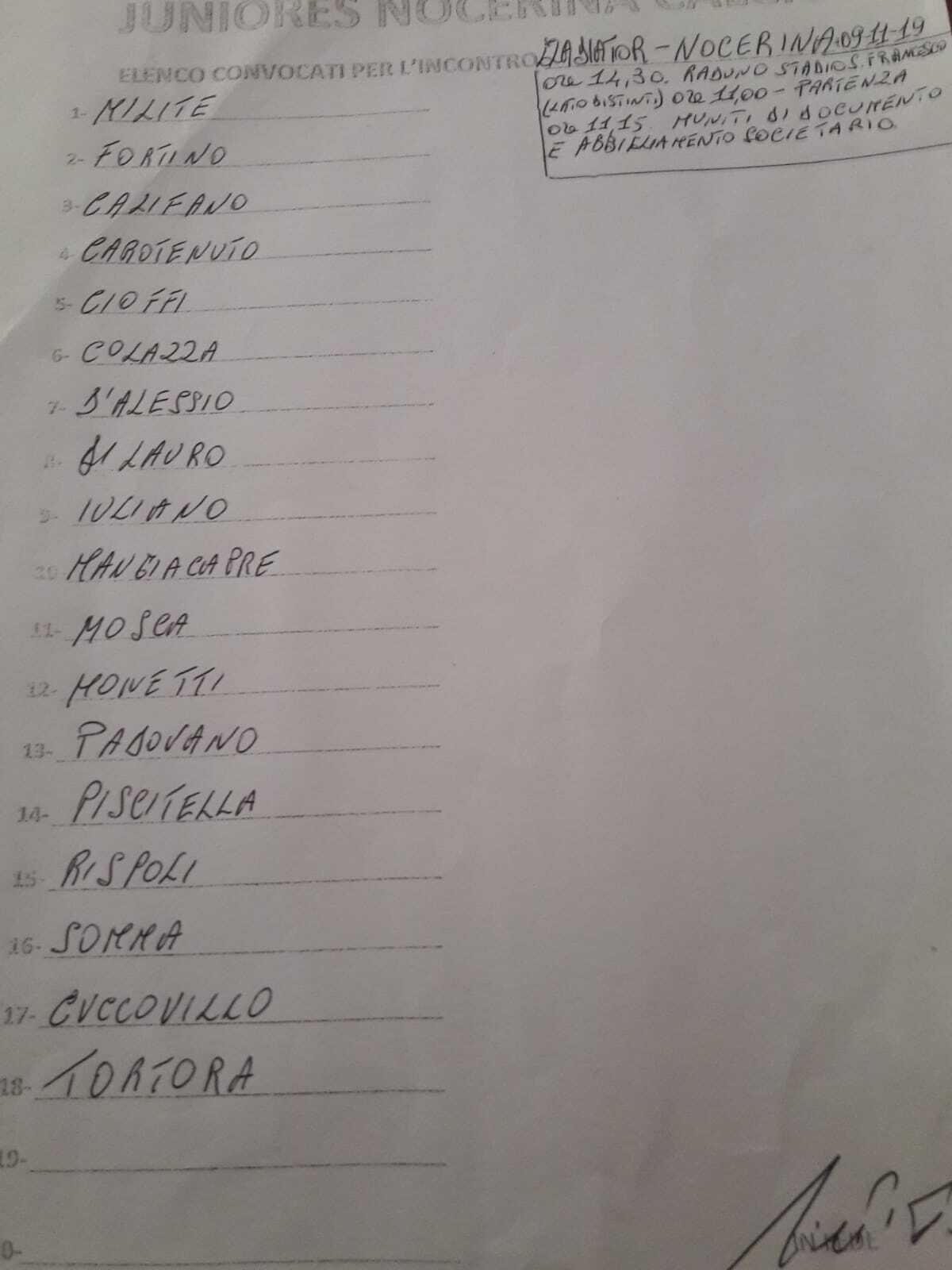 Domenica scorsa è arrivata la vittoria rossonera con la prima squadra sul campo dei sammaritani. Cercasi bis domani pomeriggio a livello Juniores, in quel di Pietramelara. Non c’è il maxi squalificato Silvestro tra i convocati rossoneri, out invece Ferri e Roscigno. Debutto assoluto, invece, per l’ultimo arrivato Tortora, ragazzino ex Rocchese.
