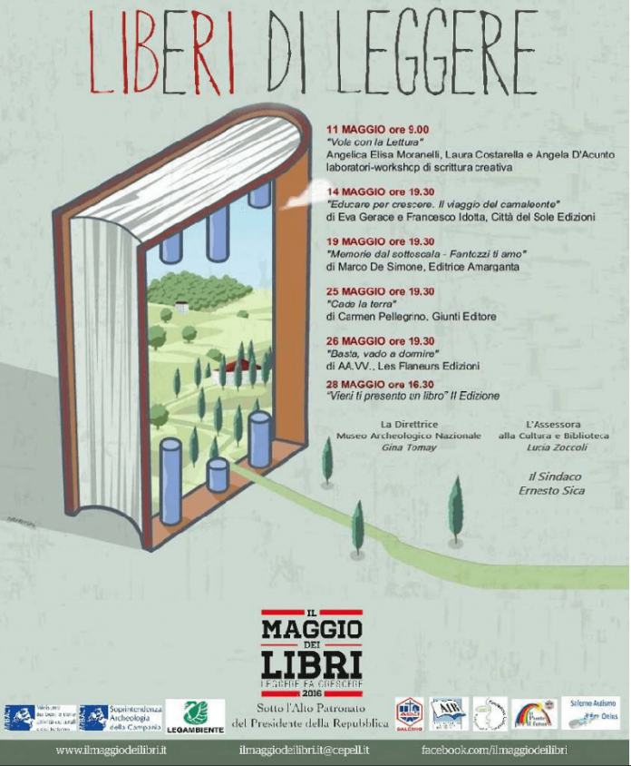 “Per la prima volta aderiamo al Maggio dei Libri proponendo un ricco programma di eventi che abbraccia tematiche molto diversificate: dall’esercitazione di scrittura creativa, che coinvolge gli alunni delle scuole secondarie di Primo grado, a romanzi ed opere che hanno suscitato un grande interesse nel pubblico, come ‘Cade la terra’ sull’abbandonologia di Carmen Pellegrino, ‘Educare per crescere. Il viaggio del Camaleonte’ di Eva Gerace e Francesco Idotta, il saggio di Marco De Simone sul mondo fantozziano, fino alla trattazione di altri temi sociali importanti come l’autismo con la presentazione del volume curato da Rita Francese. Il Museo Archeologico Nazionale di Pontecagnano si apre anche alla letteratura nella convinzione che eventi come questi possano attrarre un pubblico sempre più ampio che condivida la programmazione culturale ormai avviata da tempo” dichiara Gina Tomay, Direttrice del Museo.