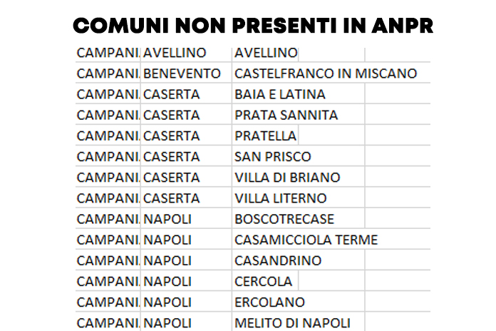 Ecco i comuni della Regione Campania che hanno aderito al progetto ANPR