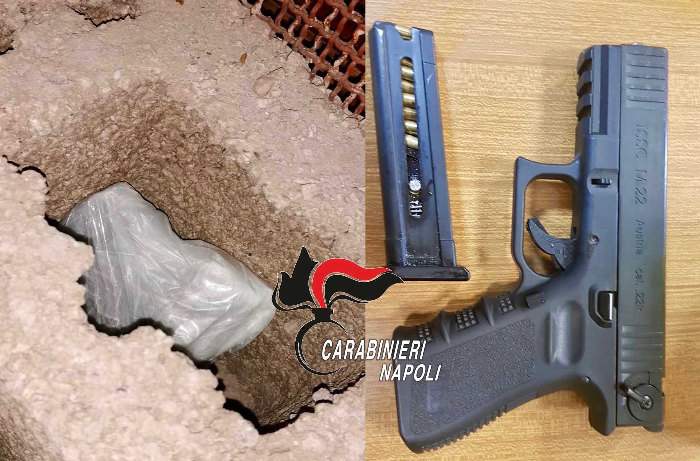 Una pistola ISSC ca­libro 22 con matrico­la abrasa e 9 colpi nel serbatoio, 5 gra­mmi di cocaina in do­si e un bilancino di precisione. Questo il bilancio delle pe­rquisizioni svolte dai carabinieri della stazione di Gragnano e del Nucleo Cinof­ili di Sarno nei con­domini di Via Mandrio e Via Ogliaro. Durante lo stesso servizio i militari hanno segnalato alla prefettura un 21enne del posto, trovato in possesso di 2 gra­mmi di marijuana.