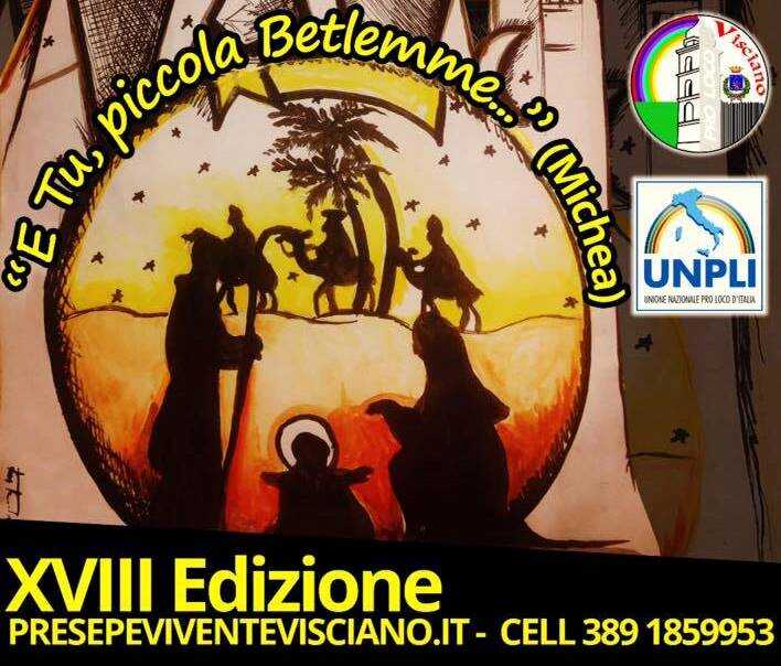 Visciano si trasformerà nella città di Betlemme. La Pro Loco ha infatti organizzato, dal 4 al gennaio 2017, la XVIII edizione del presepe vivente “E tu piccola Betlemme” nel centro storico cittadino. Sono ben 50 le scene rappresentate attraverso le azioni dei figuranti che faranno tornare i visitatori indietro nel tempo. Non mancheranno le degustazioni di prodotti tipici realizzati con metodi tradizionali. Chi vorrà avrà anche la possibilità di partecipare a visite turistiche della città con tappa alle celle dei monaci camaldolesi, alla fattoria didattica e al belvedere con vista sul Golfo di Napoli. Un evento da non perdere assolutamente.