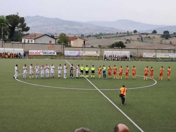 Esordio stagionale per il Grotta, questo pomeriggio in coppa, il Grotta ha avuto ragione col minimo scarto dell’Alfaterna. La squadra di Iuliano cerca di far gioco, soprattutto quando le azioni partono dal piede di Conti, l’esperto centrale che è il primo regista. Primo tiro in porta è al 20esimo,dalla sinistra in cross arriva a Volzone, oggi finto nueve, che di testa manda debolmente in porta. Comincia il secondo tempo con il Grotta che cerca di portarsi in vantaggio.Anche in dieci, a seguito dell’espulsione di Fusco,che ha preso il rosso diretto per una entrata a piedi uniti su un avversario, i padroni di casa esercitano supremazia territoriale. L’Alfaterna pareggia il numero degli uomini in campo, rosso per il portiere Benevento, per aver applaudito platealmente l’arbitro. E ad un quarto d’ora dal termine arriva il vantaggio dei padroni di casa. Da un traversone da destra, un difensore svirgola il pallone di Russolillo, che si infila nell’angolino.
