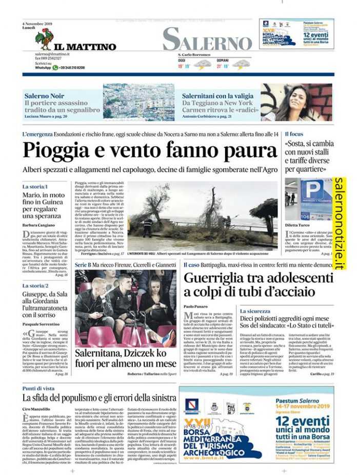 Pioggia e vento fanno paura. Alberi spezzati e allagamenti nel capoluogo, decine di famiglie sgomberate nell’Agro. L’emergenza. Esondazioni e rischio frane, oggi scuole chiuse da Nocera a Sarno ma non a Salerno: allerta fino alle 14