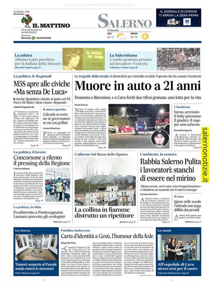 IL MATTINO, edizione Salerno, i titoli e la prima pagina