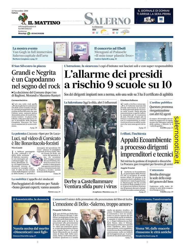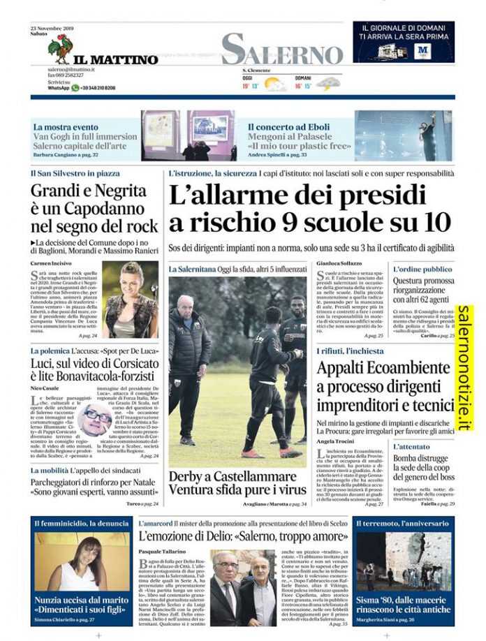 Il Mattino, edizione Salerno, i titoli e la prima pagina