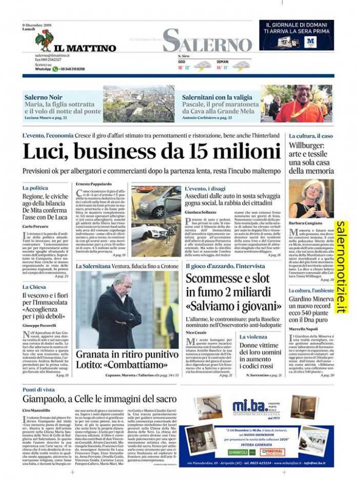 Il Mattino, edizione Salerno, i titoli e la prima pagina