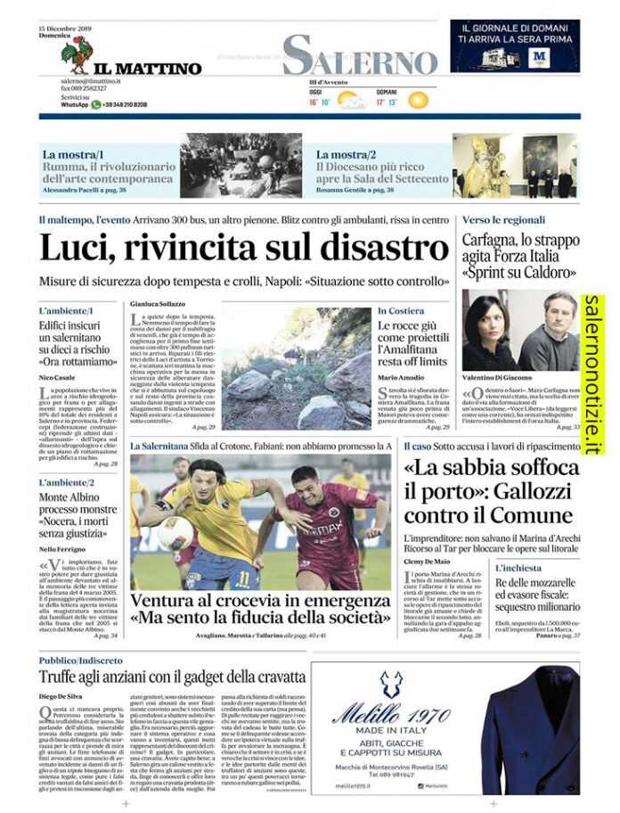 Luci, rivincita sul disastro. Misure di sicurezza dopo tempesta e crolli, Napoli: «Situazione sotto controllo». Il maltempo, l’evento. Arrivano 300 bus, un altro pienone. Blitz contro gli ambulanti, rissa in centro.