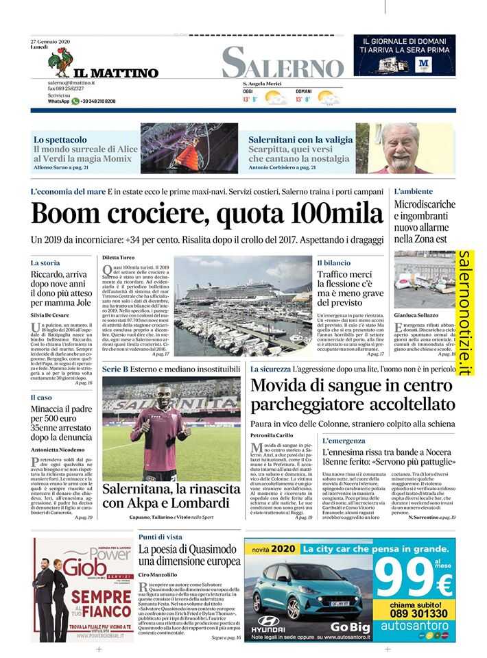 Boom crociere, quota 100mila. Un 2019 da incorniciare: +34 per cento. Risalita dopo il crollo del 2017. Aspettando i dragaggi. L’economia del mare. E in estate ecco le prime maxi-navi. Servizi costieri, Salerno traina i porti campani