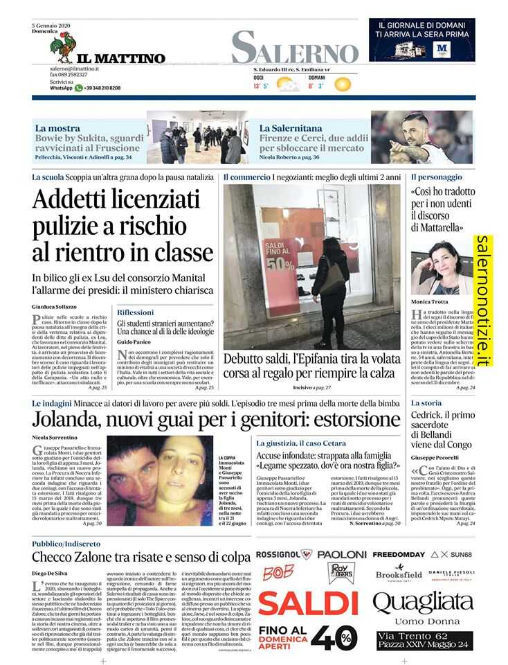 Il Mattino, edizione Salerno, la prima pagina e i titoli