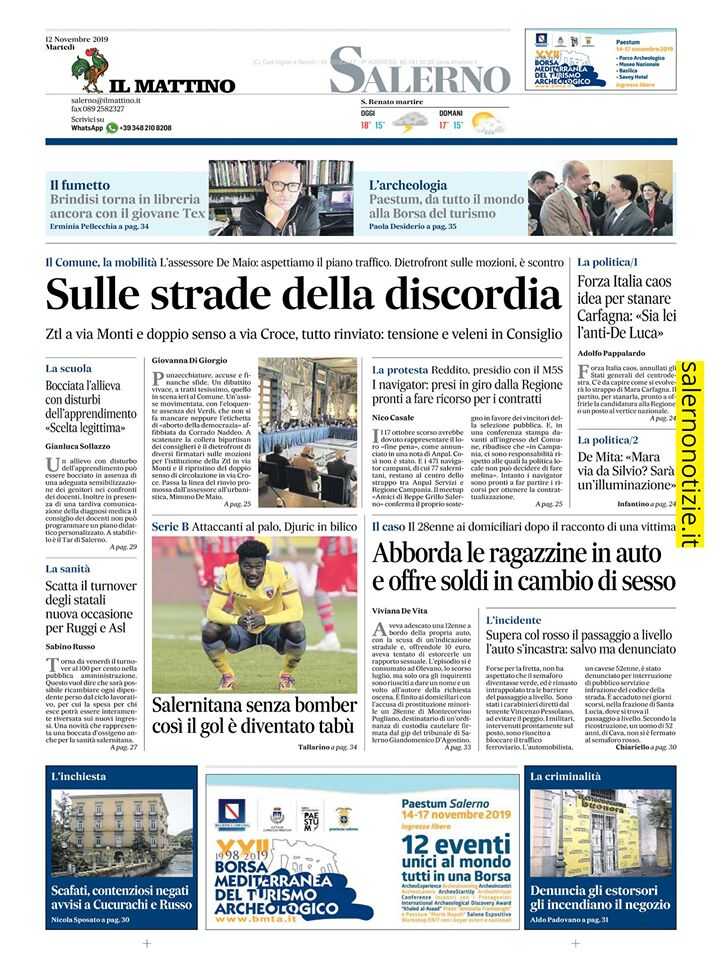 IL MATTINO, edizione Salerno, la prima pagina e i titoli