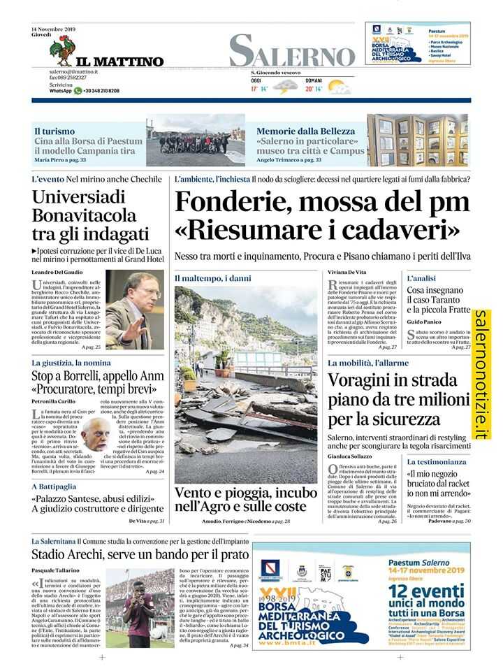 IL MATTINO, edizione Salerno, la prima pagina e i titoli