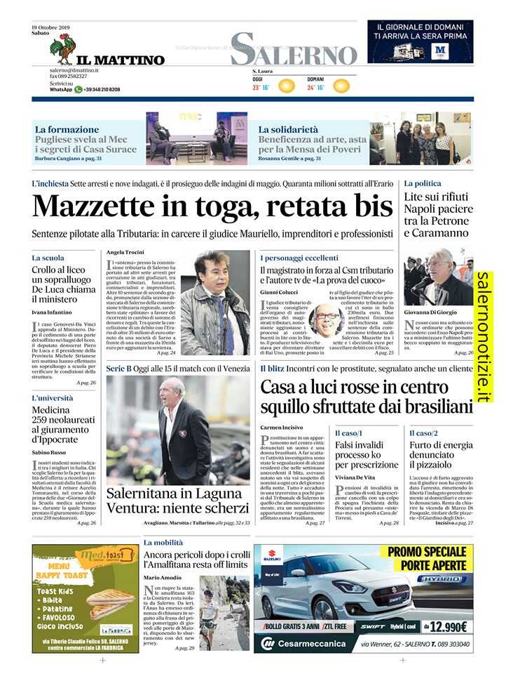 Mazzette in toga, retata bis. Sentenze pilotate alla Tributaria: in carcere il giudice Mauriello, imprenditori e professionisti. L’inchiesta. Sette arresti e nove indagati, è il prosieguo delle indagini di maggio. Quaranta milioni sottratti all’Erario.