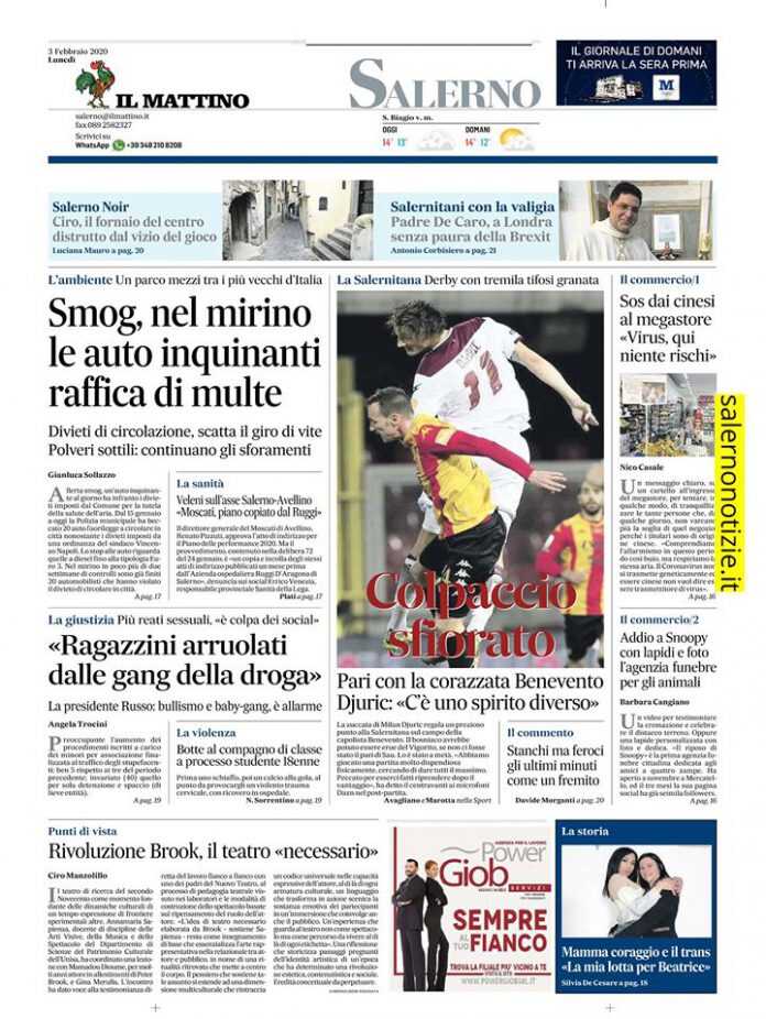 Il Mattino edizione Salerno, titoli e prima pagina