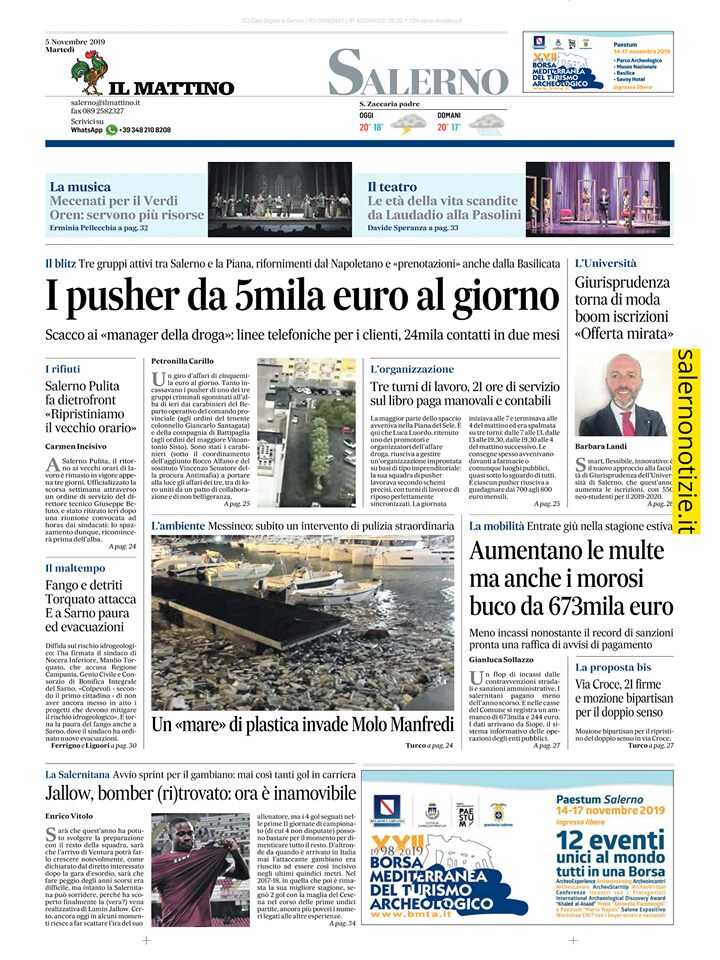 IL MATTINO, edizione Salerno, titoli e prima pagina