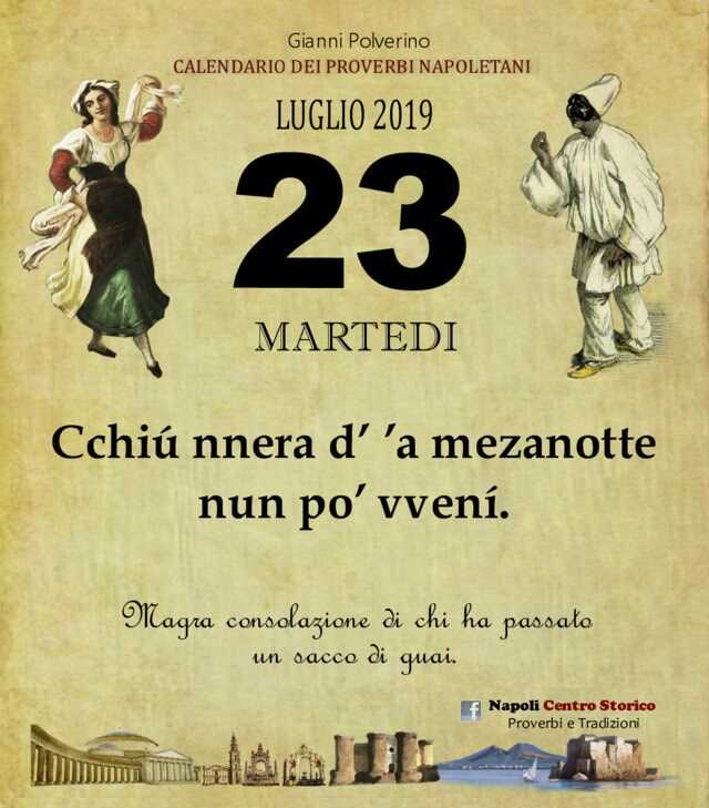 NewsIl Proverbio del giornoDi redazione mn24 - 23 Luglio 2019049FacebookTwitterPinterestWhatsApp Cchiú nnera d’ ’a mezanotte nun po’ vvení. Magra consolazione di chi ha passato un sacco di guai.