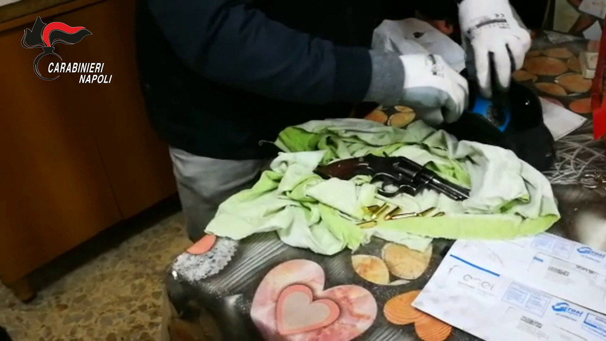 I Carabinieri della Compagnia Napoli – Vomero insieme a colleghi del Reggimento Campania e unità cinofile hanno eseguito un servizio ad “alto impatto” nell’area di Miano ritenuta sotto il controllo del clan camorristico dei “Lo Russo”, procedendo a perquisizioni per blocchi di edificio. All’interno di una casa disabitata sul vico Chiesa è stato rinvenuto e sequestrato un revolver calibro 38 special con 6 cartucce nel tamburo e altre sette cartucce che ignoti avevano nascosto in un marsupio insieme a due immaginette sacre.