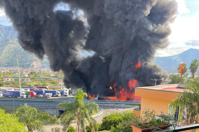 L’aria sta diventando irrespirabile anche a distanza di chilometri mentre nei pressi del deposito sono già state evacuate diverse famiglie.