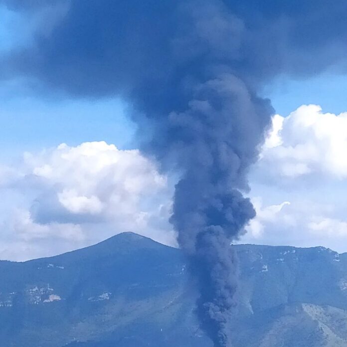Una coltre di fumo nero si è alzata dalla zona, visibile in diverse aree dell’agro nocerino sarnese.
