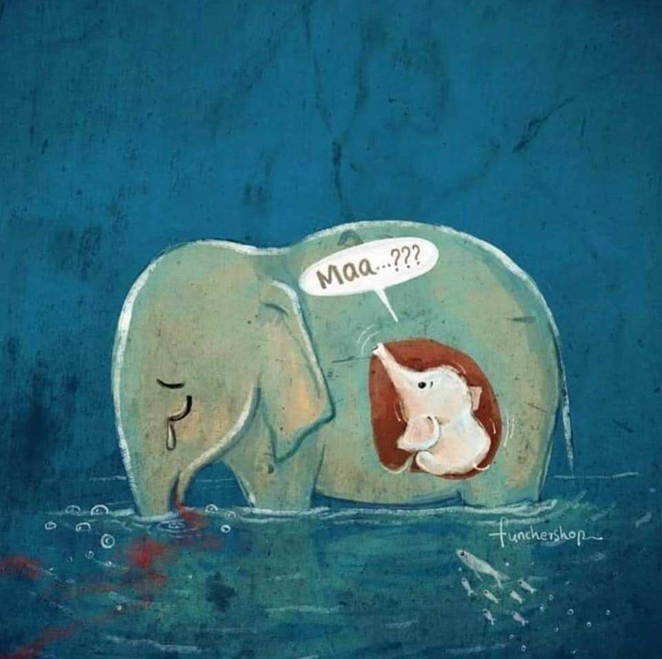 Completamente inerme e indebolito dalle gravi ustioni l’elefante si è avvicinato al fiume Velliyar dove è morto, in piedi, insieme all’elefantino che portava in grembo e che sarebbe nato dopo 18-20 mesi e in preda a dolori atroci.
