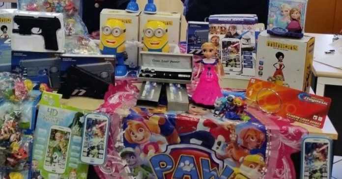 Nel corso dei controlli effettuati all’interno dei parchi e dei giardini pubblici di Napoli, gli Agenti della Polizia Municipale hanno sequestrato oltre 500 articoli tra bigiotteria, giocattoli, apparecchiature a basso voltaggio e pile necessarie al loro funzionamento. La merce in vendita era esposta su banchetti e teli nella Villa Comunale. Sulle confezioni non era riportato il contenuto minimo delle informazioni in italiano a tutela del consumatore previste dal codice del consumo, mentre la marcatura di conformità “CE”, relativa alla sicurezza dei prodotti, risultava essere assente o contraffatta. Una parte della merce era inoltre costituita da giocattoli la cui vendita è vietata, da pericolosi puntatori laser e da pistole softair tipo beretta.