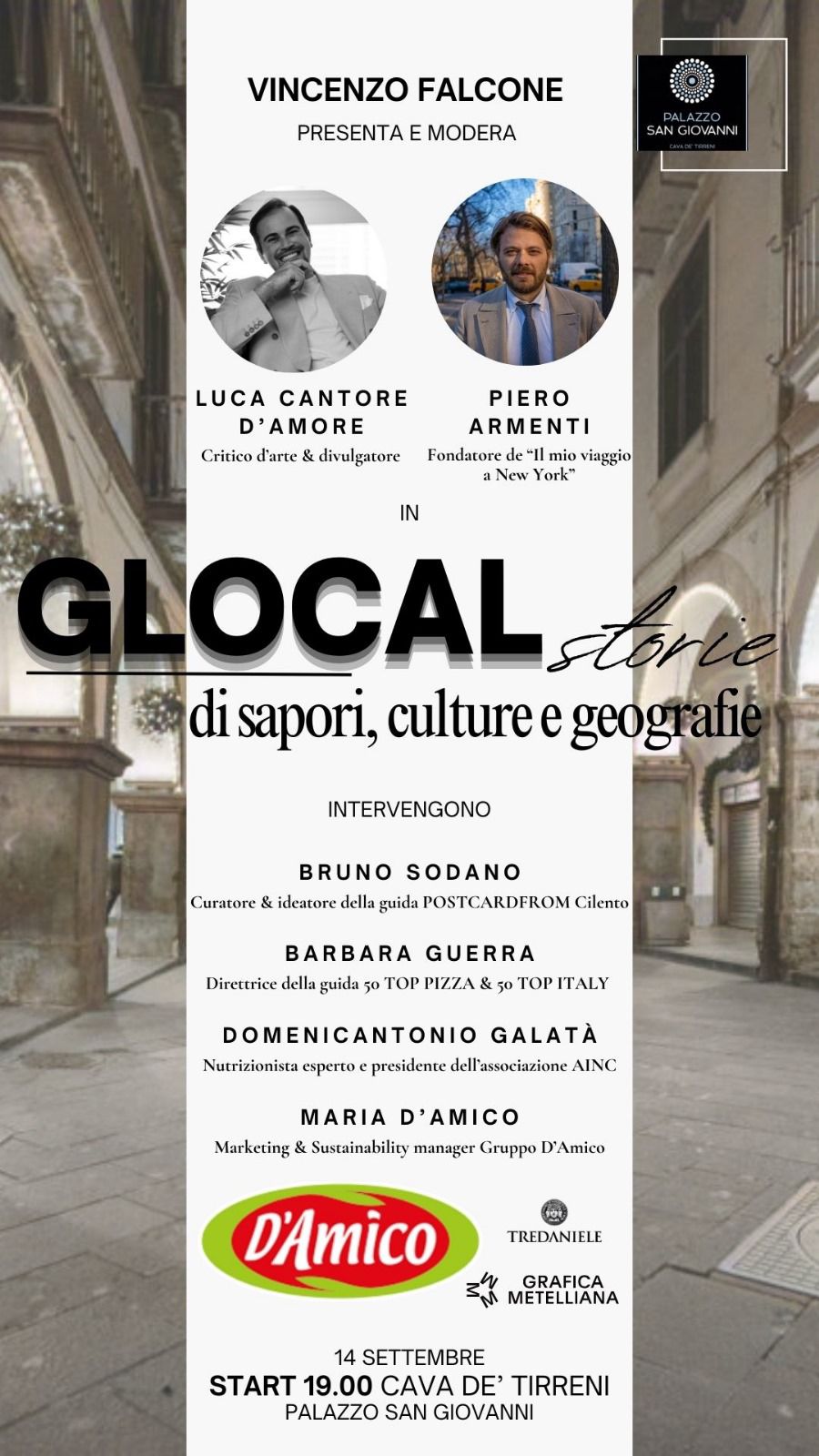 L‘appuntamento si terrà sabato 14 settembre alle ore 19 al Palazzo San Giovanni di Cava de Tirreni. Vincenzo Falcone, founder di Golocious e pioniere della cultura food sui social network, ci trasporterà, tramite questa serata da lui organizzata, alla scoperta della diversità culinaria, culturale e geografica del nostro Paese.