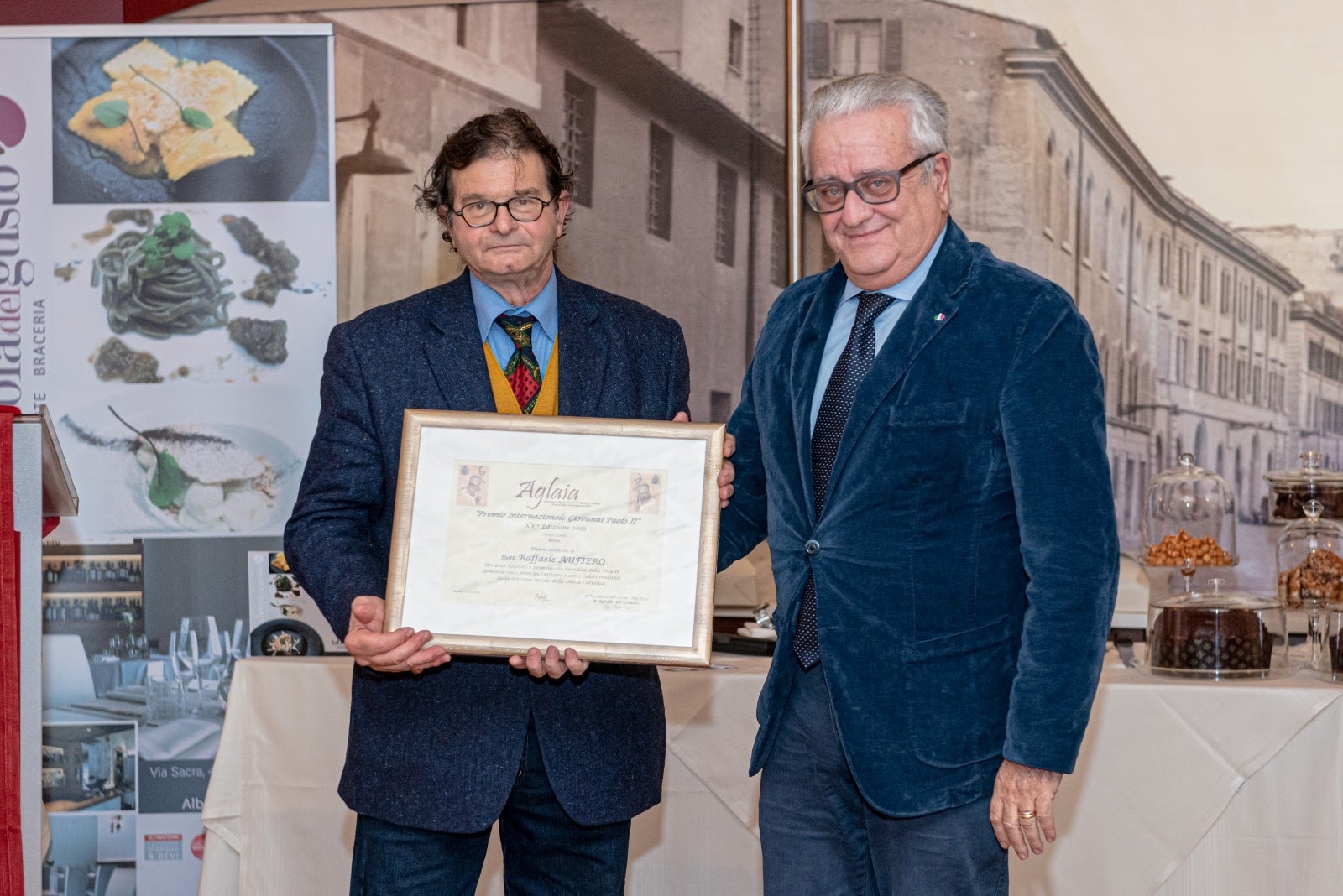 A sinistra Raffaele Aufiero, insignito nel 2019 del premio alla carriera Aglaia.