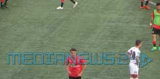 Potrebbe pareggiare subito i conti la Sarnese, sempre su calcio piazzato: la punizione di Raiola del minuto 34 si stampa però all’incrocio dei pali. Ancora Sarnese al 37′: di poco alta sulla traversa la conclusione di Fido.