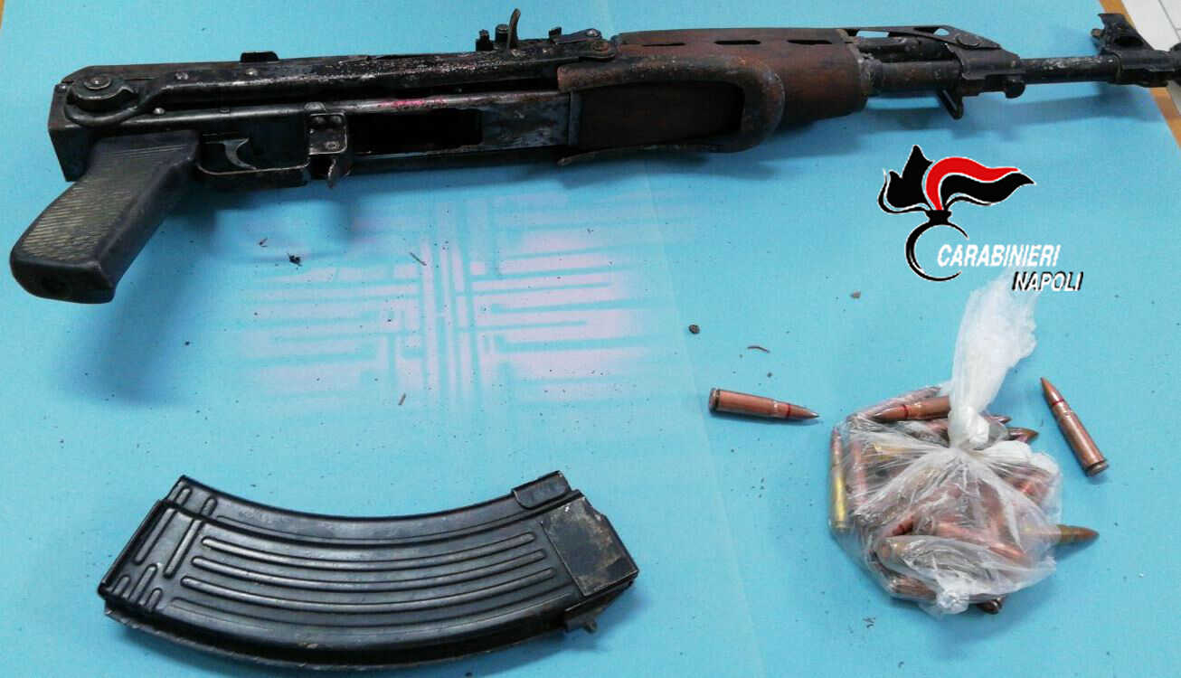 Nel corso di controlli nel complesso di edilizia popolare chiamato “Cisternina”, i Carabinieri della stazione di Castello di Cisterna hanno rinvenuto e sottoposto a sequestro un fucile mitragliatore Kalashnikov (ak47) con 26 cartucce, oltre a sostanze stupefacenti per un totale di 331 grammi (21 di cocaina, 183 di hashish e 127 di marijuana). Il fucile mitragliatore era nascosto in una intercapedine della rete fognaria, il resto nei giardini condominiali degli stabili.