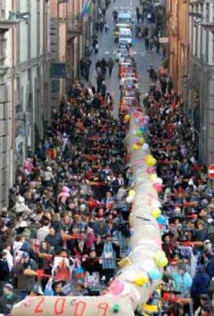 La Calza della Befana più lunga del mondo di Viterbo, potrebbe perdere il suo record. A togliere lo scettro alla città dei Papi ci sta provando Pietramelara, piccolo comune di nemmeno 5mila abitanti in provincia di Caserta in cui la pro loco sta realizzando una calza di 85 metri. Quella viterbese invece è lunga “solo” 52 metri. Entrambe le calze saranno trasportate da Fiat 500 ed entrambe le calze avranno una finalità sociale. Quella di Viterbo quest’anno è a favore dell’associazione italiana persone down. Quella di Pietramelara a favore dell’Avis.Buona epifania e che vinca il migliore purché alla fine i veri vincitori siano il divertimento e la solidarietà.