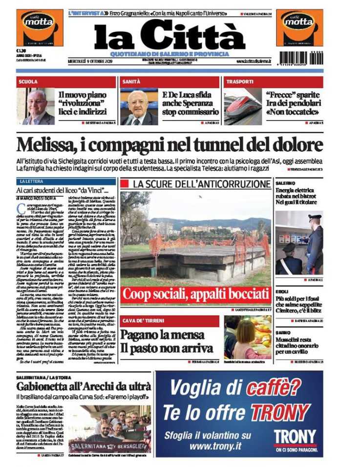 In evidenza la vicenda di Melissa ma anche altri argomenti, tra questi il piano scuola che rivoluziona licei e indirizzi, la battaglia del governatore De Luca per togliere il commissariamento alla sanità regionale e quella iniziata dal figlio per riportare la corsa mattutina di Frecciarossa per il tratto Salerno-Roma.