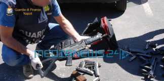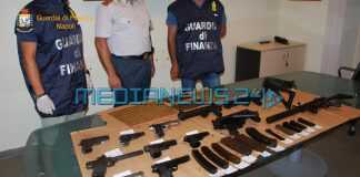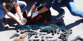 I finanzieri hanno rinvenuto nel bagagliaio della vettura un borsone contenente 8 pistole con caricatore marca Beretta, Browning e Taurus (alcune con sistema di puntamento elettronico), 4 mitragliatrici Heckler & Koch minute di serbatoio, 1 fucile d’assalto Sig con silenziatore e 605 munizioni.