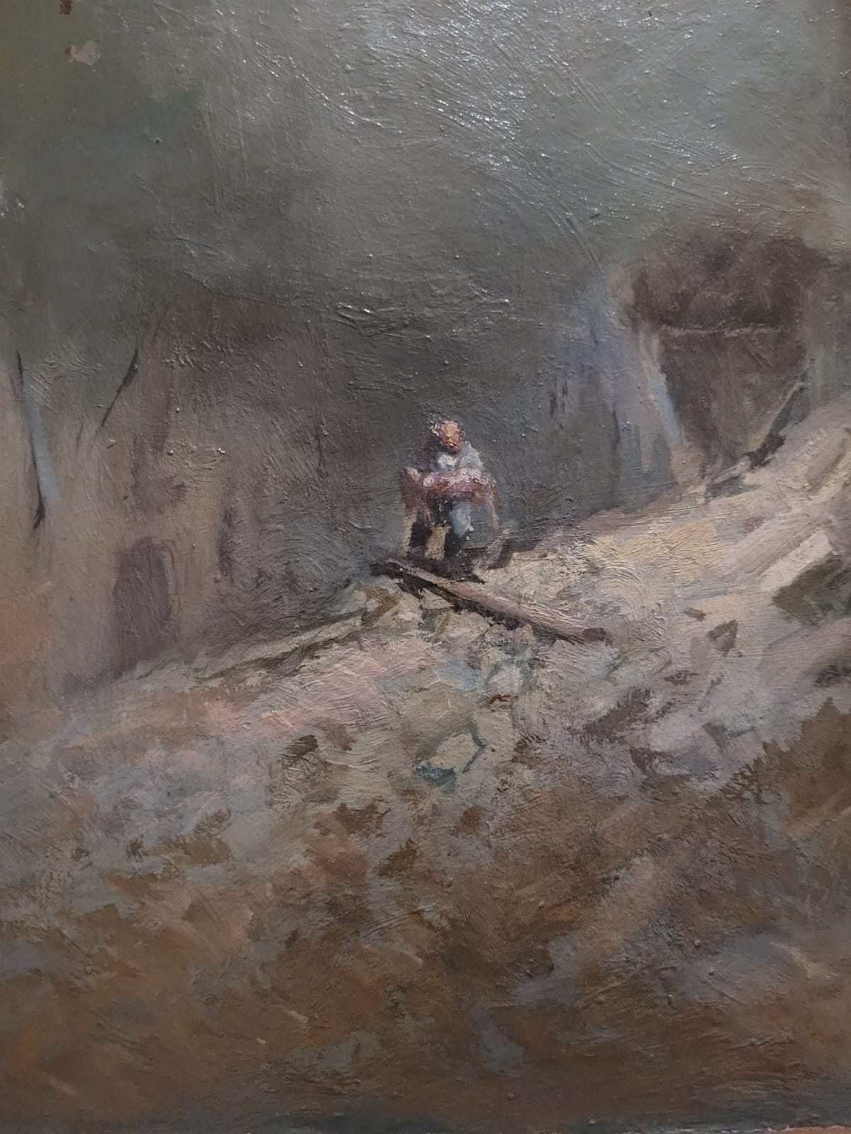 Nel settembre 1943 gli alleati scrutano il territorio paganese credendo, illusoriamente, che ci fossero diverse truppe tedesche. Ci sono molte notizie di cronaca dell’epoca che raccontano di bombardamenti alleati in alcune vie storiche della città per scovare il grosso dei tedeschi che, in realtà, erano pochi ed emaciati, alcuni dei quali aiutati dagli stessi paganesi. Il celeberrimo pittore paganese, Floriano Pepe, ritrae in via San Francesco un padre addolorato dalla morte dei figli, tra cui Annunziata (detta Nunzia) Calce di anni 10. Il pittore vive in quella strada, vicino casa sua è crollata un’abitazione in data 13 settembre alle ore 22:30 a causa di un bombardamento aereo. La bimba muore sotto le macerie, il sofferente papà, Gabriele Calce, la prende e la tiene tra le braccia. Pepe immortala questa scena mentre fa da sfondo una bolgia infernale: l’odore acre del metallo e l’accecante polvere.