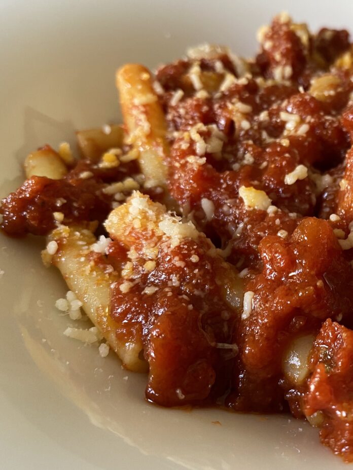 La faccio breve, le “cannazze” sono di fatto gli attuali ziti (rigorosamente da spezzare in cinque parti), che a loro volta derivano da zita che a sua volta sarebbe la sposa; da qui l’espressione i maccheroni della zita, dunque il piatto tipico degli sposalizi di un tempo, quelli che per capirci duravano tutta la vita e anche oltre.