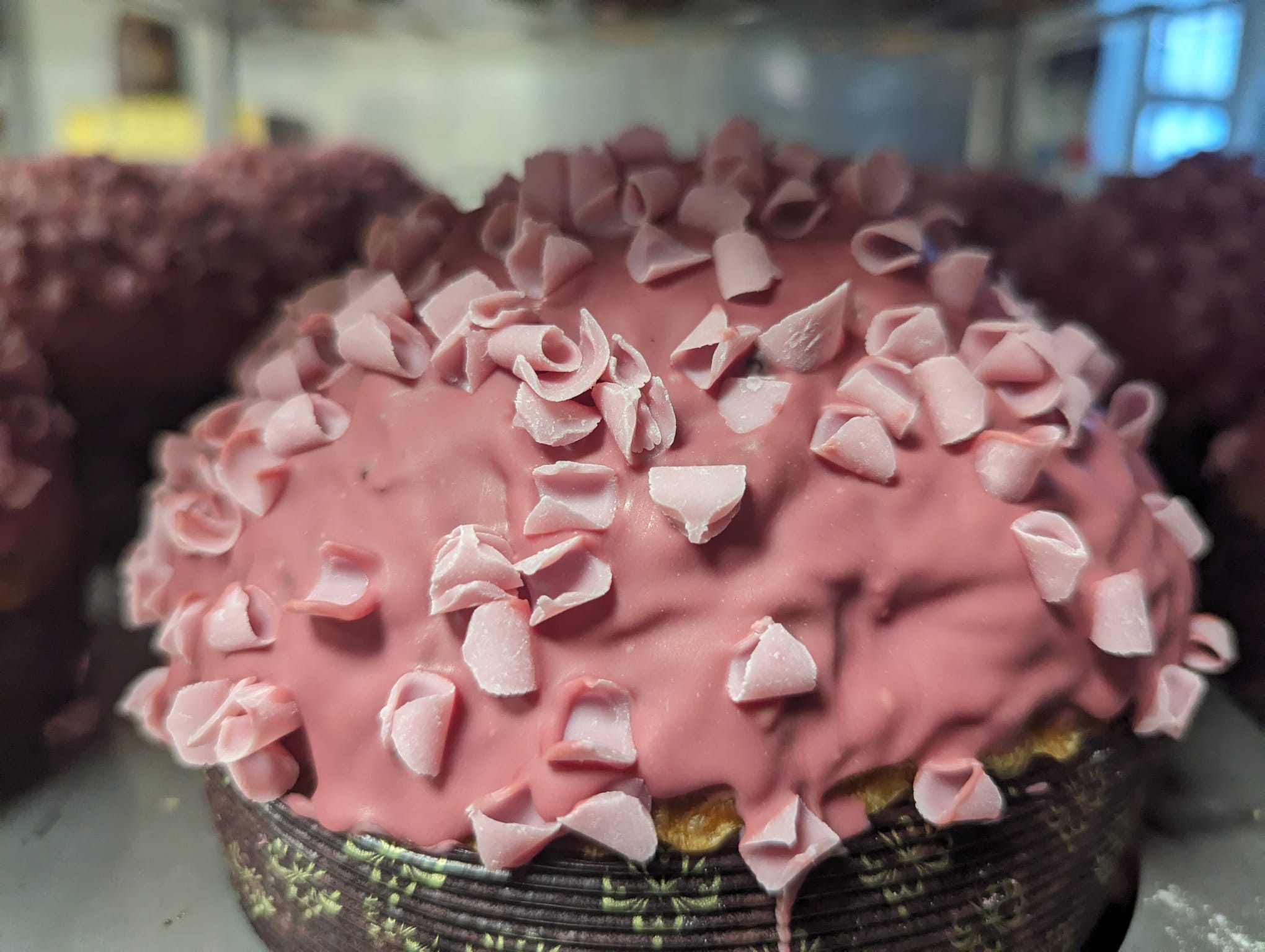 Il delicato dolce, dedicato alle mamme, è di colore rosa grazie alla glassa e ai teneri pezzi di cioccolato Ruby che l’adornano. Pesa 500 grammi, più piccolo rispetto agli altri lievitati, e all’interno è costituito da fragole, ciliegie e mirtilli rossi semi canditi. I sapori sono ben equilibrati, si avvertono da subito i frutti rossi seguiti dalla dolcezza del cioccolato Ruby.