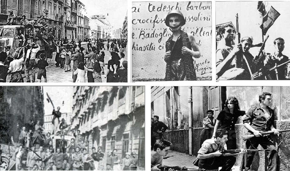 Dopo l’armistizio dell’8 Settembre del 1943, che sancì la rottura del patto tra l’Italia e la Germania, l’esercito di Hitler poteva contare su un numero di uomini e di equipaggiamenti molto superiori rispetto a quelli italiani, e inoltre gli alti ufficiali italiani spesso restavano dalla parte dei vecchi alleati, contribuendo all’uccisione della popolazione civile e alla deportazione degli uomini nei campi di concentramento.Dal 27 al 30 Settembre del ’43 dunque si ebbero le cosiddette Quattro Giornate di Napoli, quattro giornate eroiche in cui semplici cittadini ebbero la meglio sui nazisti. Il primo episodio che scatenò l’insurrezione avvenne il 27 Settembre, quando in risposta alla cattura di ottomila uomini, alcune centinaia di napoletani si armarono decisi a cacciare i tedeschi: al Vomero un maresciallo nazista fu ammazzato mentre guidava l’auto in cui si trovava, e per tutta la giornata la collina fu teatro di battaglie: in serata i cittadini, comandati da Enzo Stimolo, presero castel Sant’Elmo, che conteneva pure armi e delle munizioni, mettendo i tedeschi in fuga.