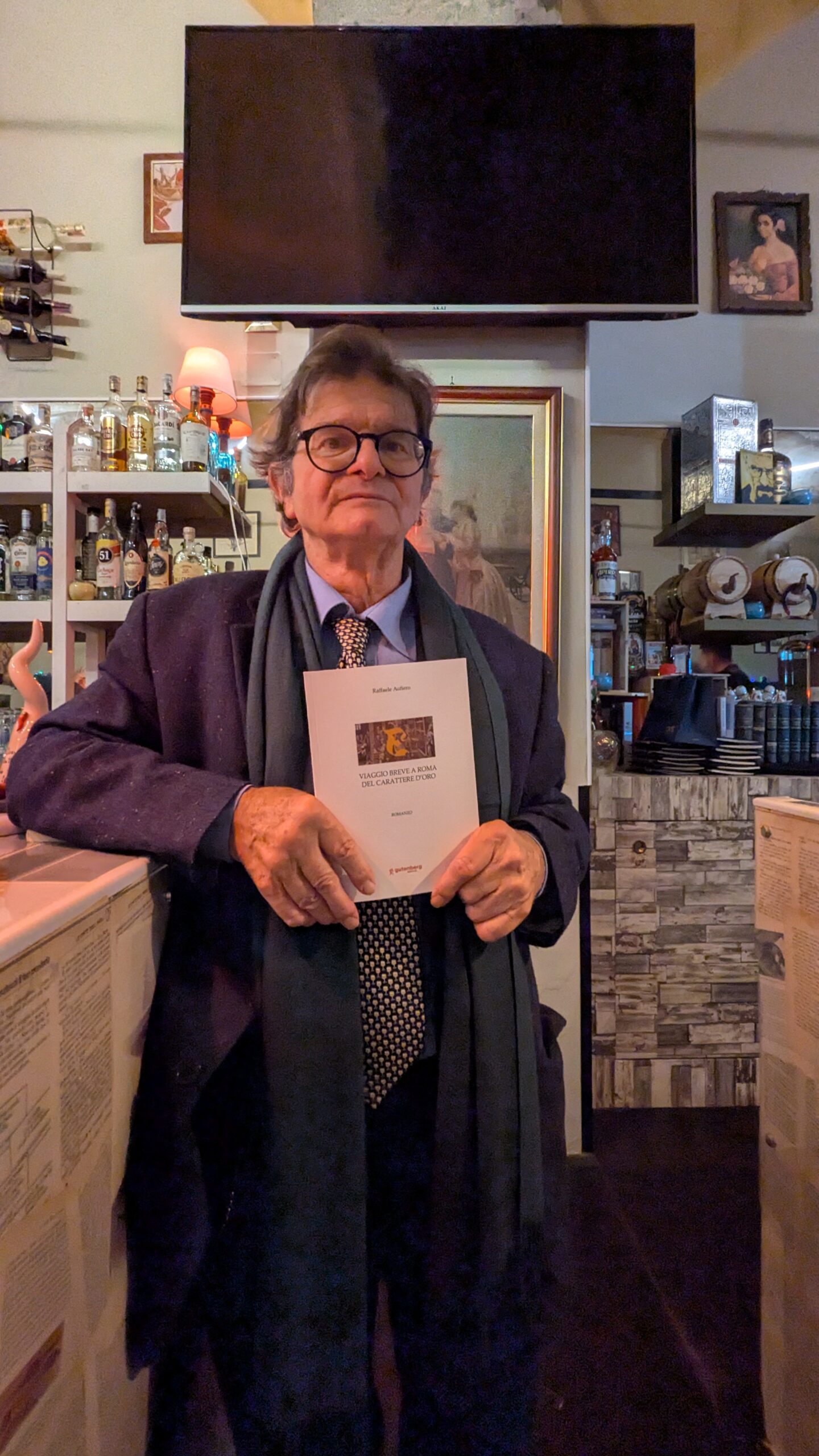 L’autore Raffaele Aufiero è nato a Pagani nel 1953 e vive a Roma dal 1977. Laureato in Filosofia all’Università Federico II di Napoli, allievo di Cleto Carbonara, è stato libraio, editor e funzionario del MiBACT (oggi MIC). Poeta, narratore, autore teatrale e critico militante, è stato avviato alla critica teatrale da Ruggero Jacobbi sulle pagine di Ridotto.Al suo attivo conta circa trenta libri pubblicati a partire dal 1972; due suoi romanzi sono stati tradotti in arabo e in armeno. Ha realizzato programmi culturali per la RAI – Servizi culturali per l’estero ed è stato collaboratore per la voce Teatro della Grande Enciclopedia Curcio.Dal 2003 al 2009 è stato ideatore e responsabile culturale del Premio di Letteratura Religiosa di Pagani. È iscritto al Sindacato Nazionale Autori Drammatici (SNAD).Con Viaggio breve a Roma del carattere d’oro, Aufiero conferma la sua capacità di coniugare rigore storico, profondità filosofica e piacere del racconto, offrendo al lettore non solo un romanzo, ma una riflessione attuale sul destino delle idee e sul prezzo dell’innovazione.