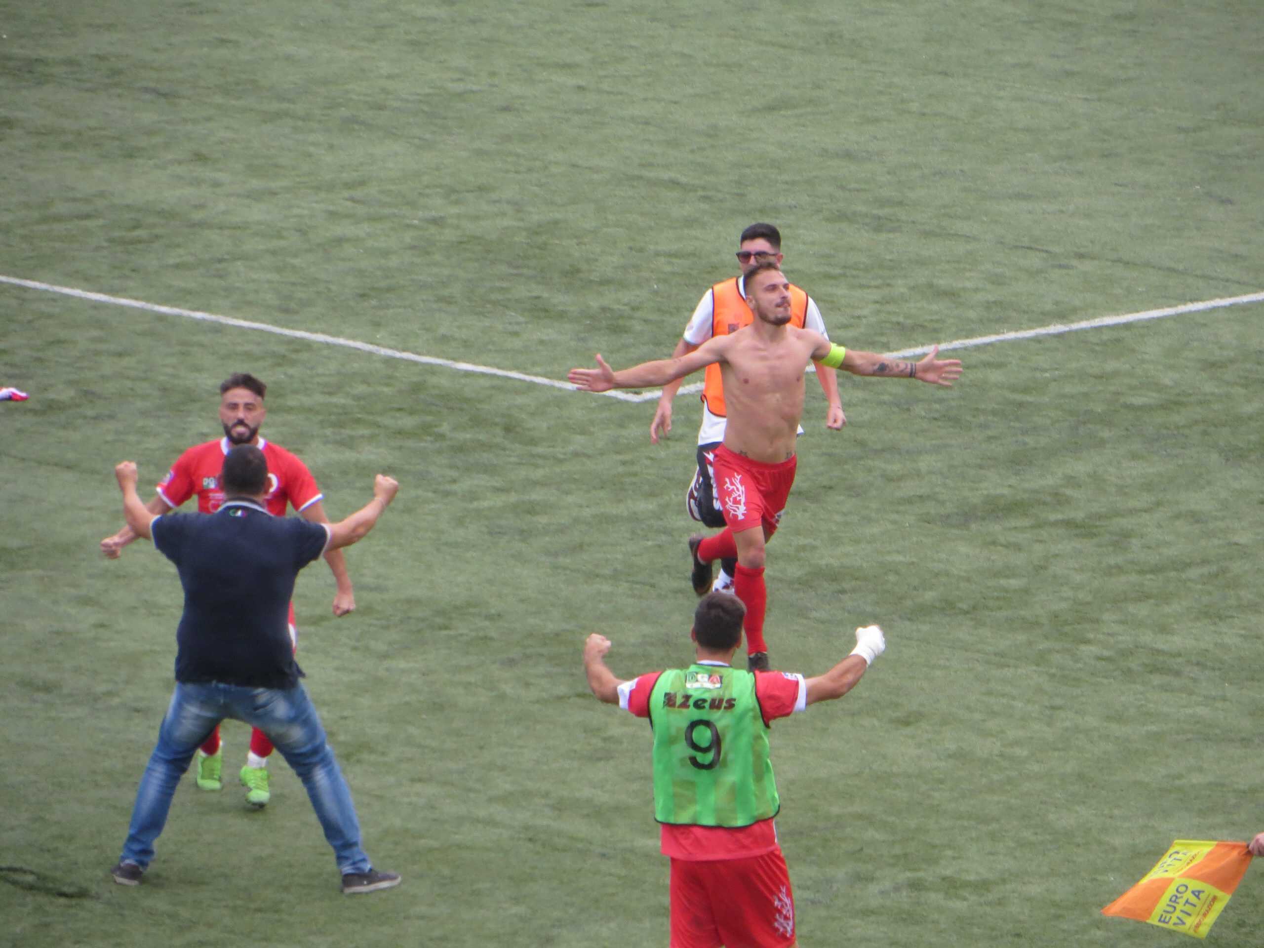 Deciso l’avvio di gara dei giallorossi, che impongono sin da subito ritmi piuttosto alti. Al 19′ traversone di Petrilli a servire Gambino, che di testa, da posizione favorevole, spedisce alto sulla traversa. Tre minuti e ci prova Cunzi di destro, mancando di un nulla il bersaglio. Al 27′ insidioso diagonale di Longo, che lambisce il palo. Trema la difesa peloritana al 32′, quando il destro di Celiento dal limite fa la barba al palo. Al minuto 41 il vantaggio corallino. Vacca addomestica un ottimo pallone e dl fondo serve centralmente l’accorrente Cunzi, che spedisce in rete. Il raddoppio pare cosa fatta al 46′, ma il colpo di testa di Aliperta, su punizione di Cunzi, si stampa sulla traversa.