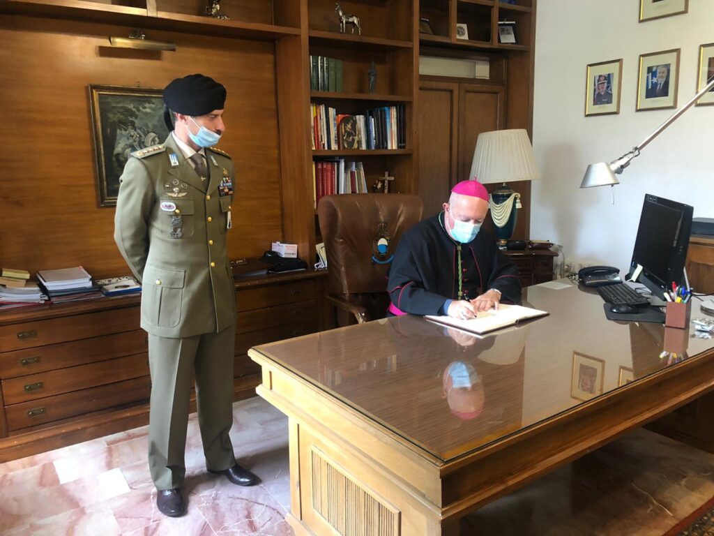 Il presule è stato accolto dal Comandante, Col. Luigi D’Altorio, e dal Cappellano Militare, don Claudio Mancusi.