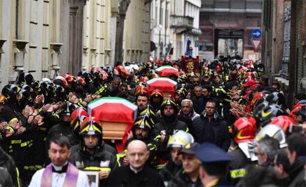 Le sirene dei vigili del fuoco e l’applauso della gente in lacrime hanno accompagnato l’arrivo delle salme dei tre vigili del fuoco, Antonino Candido, Marco Triches e Matteo Gastaldo, morti nell’esplosione di Quargnento nella cattedrale di Alessandria, dove il vescovo, monsignor Guido Gallese celebra i funerali. I feretri, dopo essere stati portati su tre autoscale dei pompieri dalla caserma in corso Romita fino in piazza della Libertà, nell’ultimo tratto sono stati portati a spalle dai colleghi delle tre vittime dalla vicina piazza della Libertà tra due ali di folla. Alle esequie hanno partecipato il premier Giuseppe Conte, il presidente della Camera Roberto Fico e il ministro dell’Interno Luciana Lamorgese.