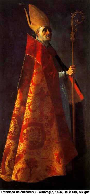 Secondo il nuovo Calendario la memoria di Aurelio Ambrogio, meglio conosciuto come S. Ambrogio, è obbligatoria per tutta la Chiesa ed è particolarmente solenne a Milano, che in questo giorno onora il suo grande Vescovo e amatissimo Patrono. In dialetto milanese viene chiamato sant Ambroeus (grafia classica) o sant Ambrös (entrambi pronunciati “sant’Ambrœs“). Aurelio Ambrogio, membro di due importanti famiglie senatorie romane (la famiglia Aureliana, da parte materna, la famiglia Simmaco, da parte paterna), nacque nel 339 a Treviri, dove il padre era prefetto del pretorio per la Gallia e, essendo destinato alla carriera amministrativa, frequentò le migliori scuole di Roma. Nel 370, dopo cinque anni di magistratura a Sirmio, fu incaricato quale governatore della Liguria, poi dell’Emilia e, infine, giunse a Milano come governatore dell’Italia settentrionale. La sua abilità di funzionario nel dirimere pacificamente i forti contrasti tra ariani e cattolici, gli valse un largo apprezzamento da parte delle due fazioni. Nel 374, alla morte del vescovo ariano Aussenzio di Milano, Ambrogio fu acclamato vescovo,a furor di popolo, anche se non aveva ancora ricevuto il battesimo. Dopo la conferma della carica da parte dell’imperatore Flavio Valentiniano, nel giro di una settimana, Ambrogio fu battezzato e ricevette il cappello episcopale. Subito dopo la consacrazione episcopale, “Tolto dai tribunali e dall’amministrazione pubblica– dirà il nuovo Vescovo –per passare all’episcopato, ho dovuto cominciare ad insegnare quello che non avevo mai imparato”.Si diede perciò alla lettura dei Libri sacri, poi studiò i Padri della Chiesa e i Dottori. L’opera di Ambrogio fu così vasta, profonda ed importante che difficilmente può essere riassunta. Basta dire che fu considerato quasi un secondo Papa, in un’epoca nella quale certo non mancarono alla Chiesa grandi figure di Vescovi. Ambrogio, però, appariva più alto di tutti per la sua opera apostolica, benché fosse piccolo e delicato nel fisico. Egli, che veniva dalla carriera dei dignitari imperiali, sostenne dinanzi all’Imperatore, non solo i diritti della Chiesa, ma l’autorità dei suoi pastori. “Sono i Vescovi che devono giudicare i laici, e non il contrario” diceva, e tra i laici metteva, per primo, l’imperatore Teodosio al quale impose una pubblica penitenza che dovette scontare da ottobre a Natale per essere ammesso ai Sacramenti. Un’altra massima di Ambrogio era : “L’Imperatore è nella Chiesa, non al disopra della Chiesa”.