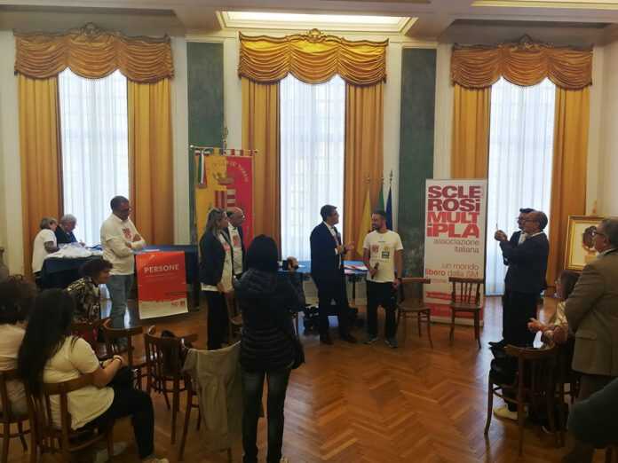Nella giornata mondiale per la lotta alla sclerosi multipla, l’ambasciatore dell’Aism, Marco Togni è stato ricevuto nel Salone d’Onore di Palazzo di Città, dal Sindaco Vincenzo Servalli, dall’assessore ai servizi sociali, Antonella Garofalo, presenti il Presidente del Consiglio Lorena Iuliano, il vicesindaco Armando Lamberti, l’assessore Nunzio Senatore, i Consiglieri comunali Eugenio Canora, Paola Landi, Franco Manzo, Francesca Brunetto, il Presidente Aism Salerno, Rosalba Savastano, accompagnata dalla referente cavese Alessandra Siani e i rappresentanti dell’Osservatorio cittadino sulla condizione delle persone con disabilità.