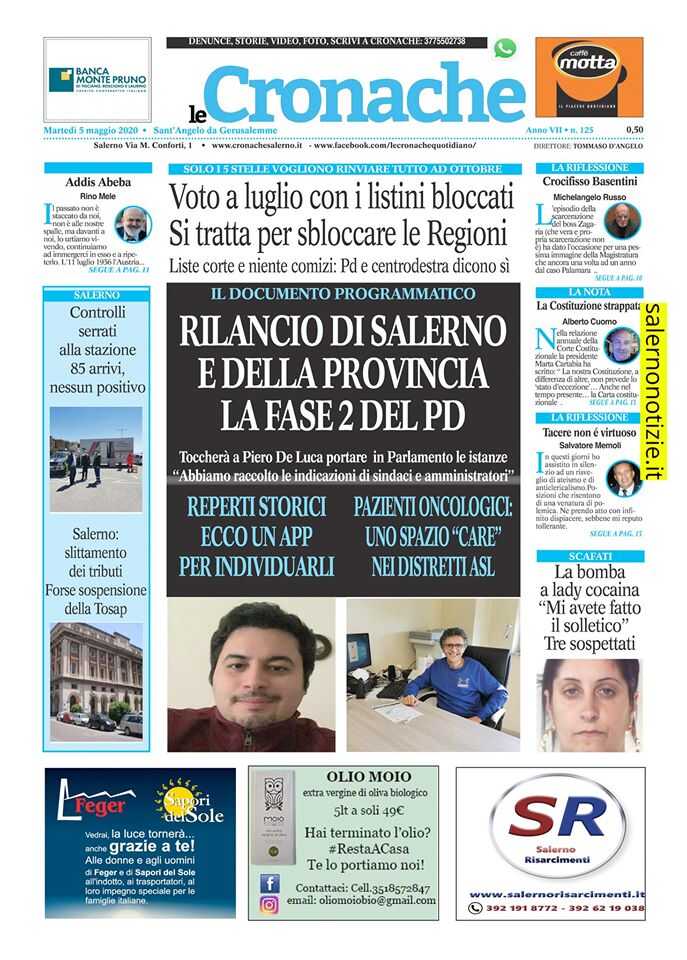 A centro pagina: Rilancio di Salerno e della provincia. La fase 2 del Pd. Toccherà a Piero De Luca portare in Parlamento le istanze “Abbiamo raccolto le indicazioni di sindaci e amministratori”. Il documento programmatico