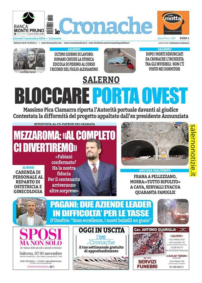 Di spalla: Ancora maltempo. Frana a Pellezzano. Morra: «Tutto ripulito». A Cava, Servalli evacua quaranta famiglie.