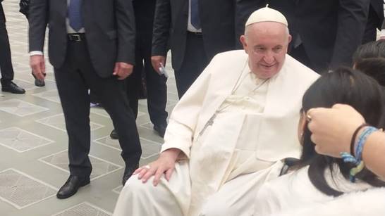 Nonostante le condizioni climatiche avverse, la nostra delegazione è riuscita questa mattina ad incontrare il Santo Padre e a prendere parte all’ Udienza Generale nell’ Aula Paolo VI in Vaticano.