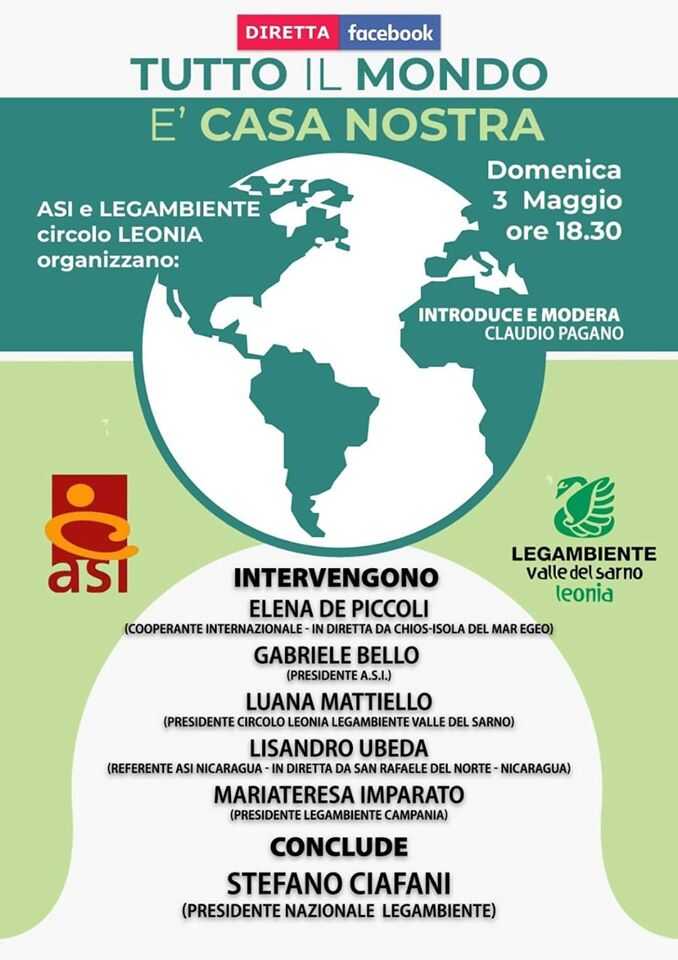 Infatti, domenica 3 Maggio, alle ore 18:30, durante la diretta facebook “Tutto il mondo è casa nostra“, si discuterà dell’importanza della rete, della necessità della sintesi tra le associazioni del territorio e del bisogno di fare fronte comune.
