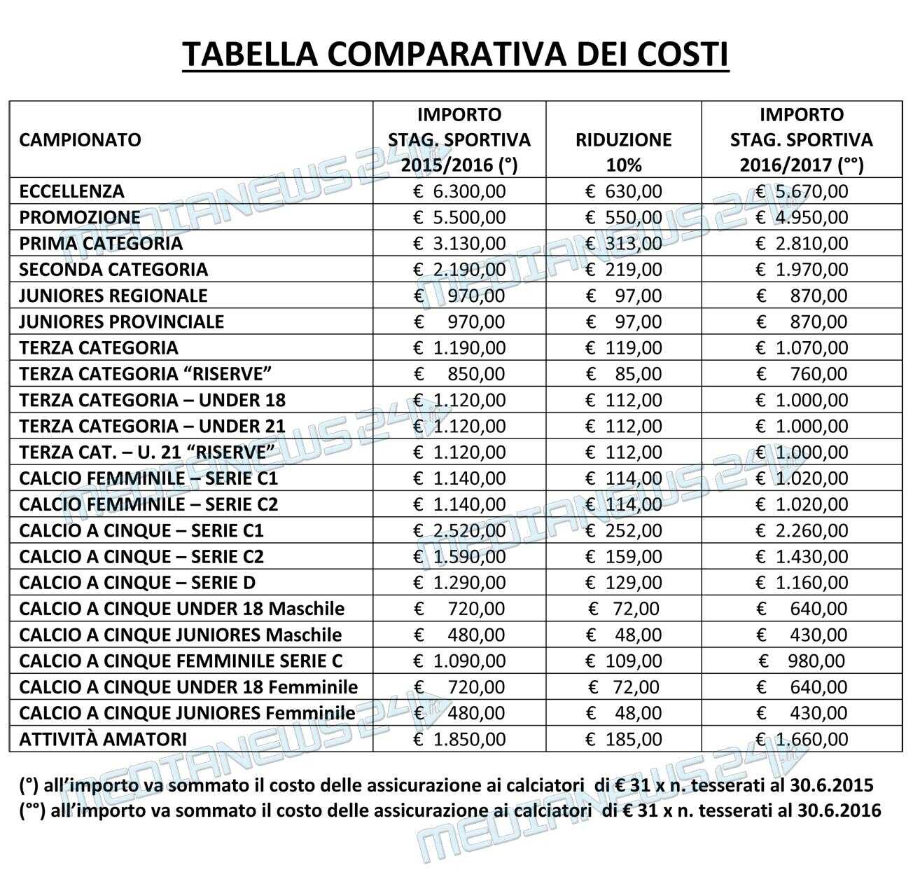 Nella tabella comparativa dei costi sostenuti dalle Società nella stagione sportiva appena conclusosi emerge chiaramente il risparmio a favore dei sodalizi sportivi campani che in alcuni casi appare davvero significativo.